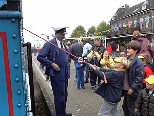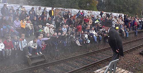 Die Kinder auf dem Bahnsteig verfolgen die Geschichte mit Spannung